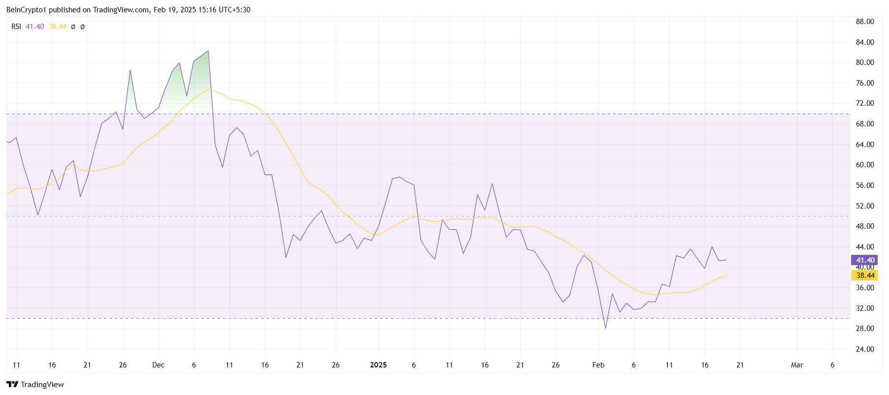 З технічної точки зору, цінова динаміка Uniswap залишається приглушеною, що відображається в індексі відносної сили (RSI), який коливається нижче нейтральної позначки. Хоча спостерігається невелике зростання RSI, що вказує на певний оптимізм (ринковий), він залишається нижче порогу 50,0.