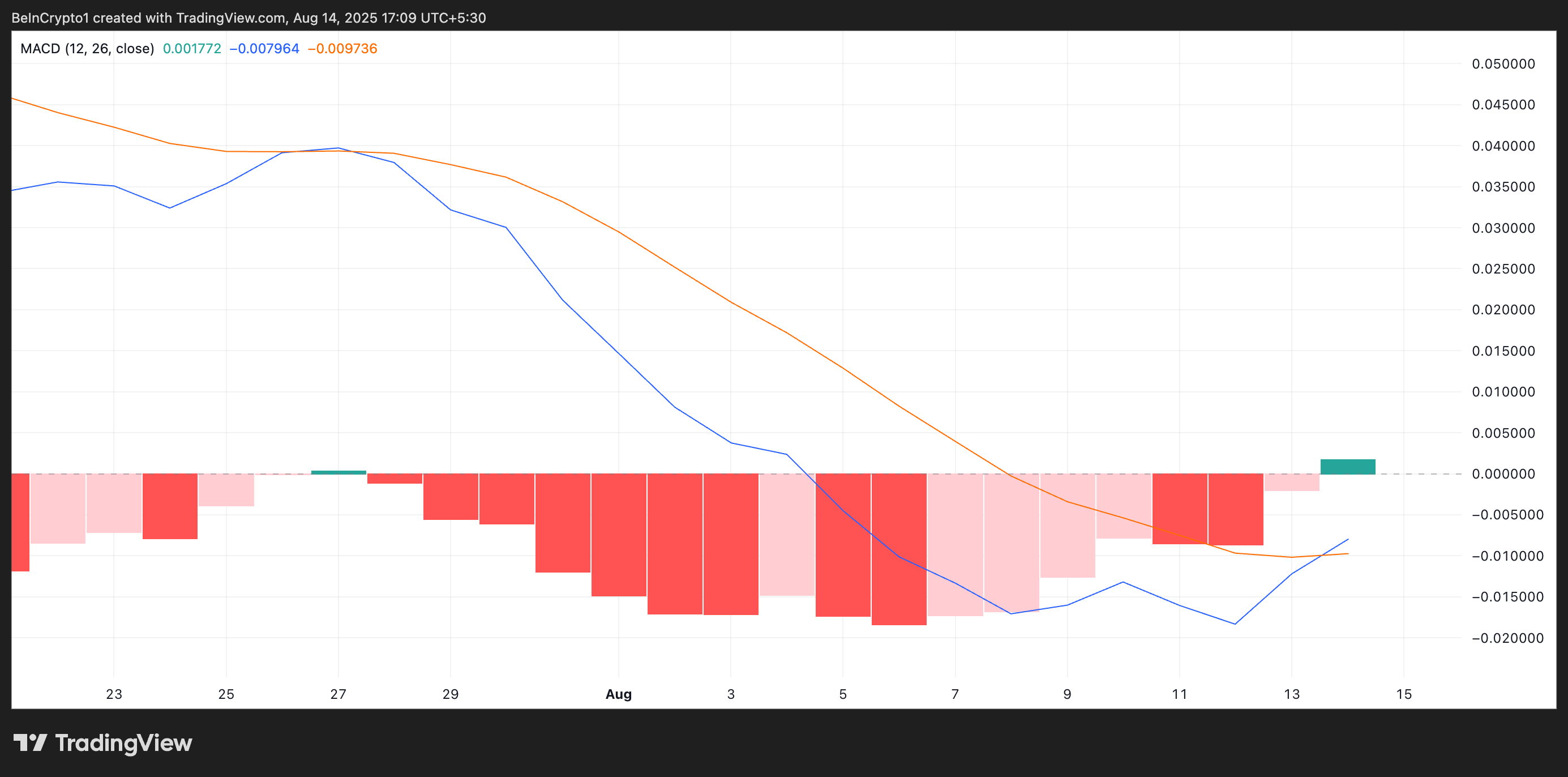Показники з одноденного графіка USELESS/USD показують, що лінія MACD токена (синя) вперше з 17 липня знаходиться над своєю сигнальною лінією (помаранчева).
