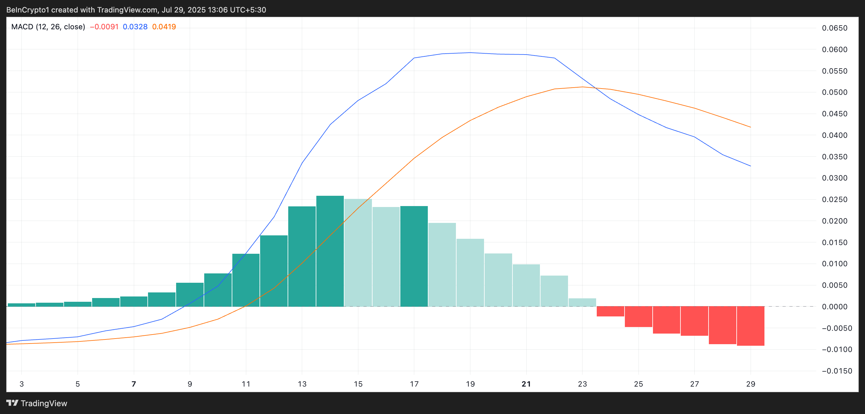 Аналіз одноденного графіка XLM/USD показує, що індикатор конвергенції/дивергенції ковзної середньої (MACD) сформував ведмежий перетин 24 липня.