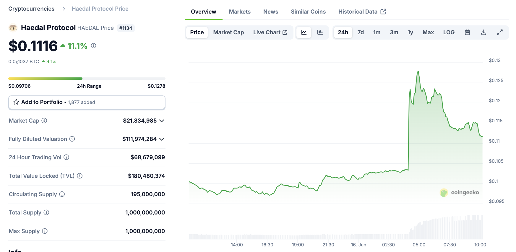 Проте, ця затримка, можливо, не сильно вплинула на Haedal. Обидва токени демонструють схожі цінові криві, з різким стрибком, що знижується до вищого рівня.