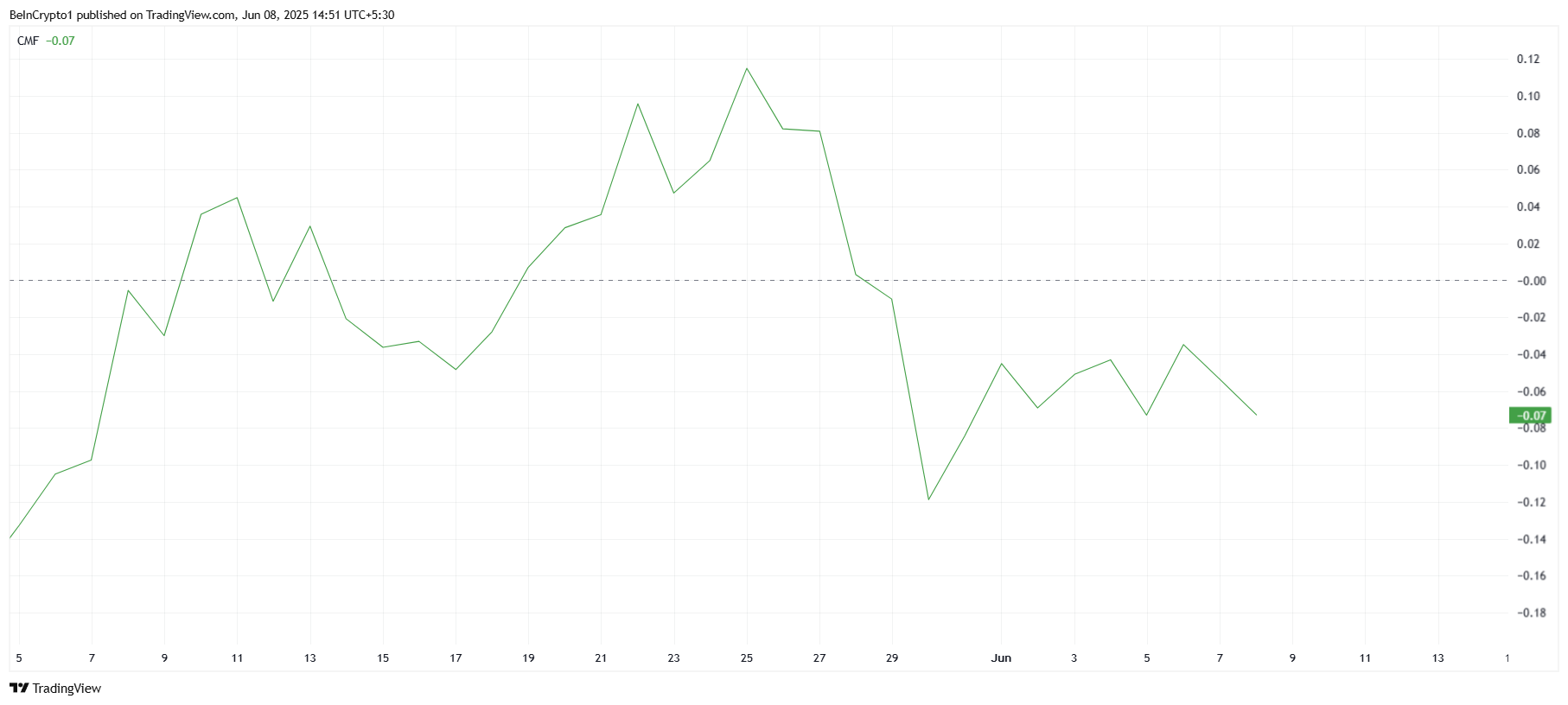 Ведмежий показник на CMF сигналізує про невизначеність щодо майбутніх перспектив Cardano, оскільки інвестори намагаються зменшити свій ризик впливу на токен.