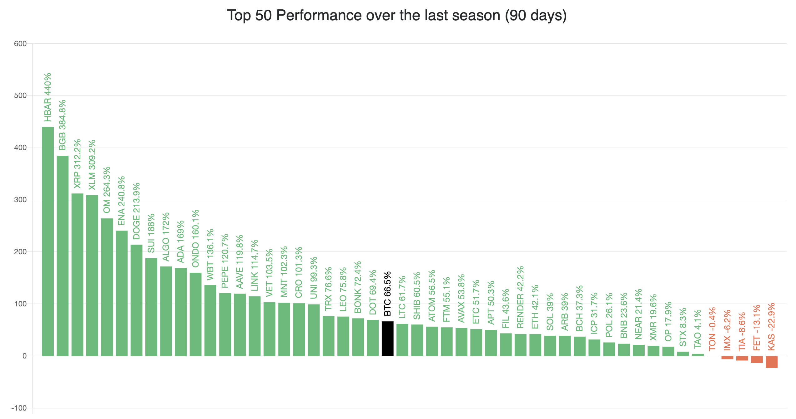 Індекс сезону альткоїнів, який підтверджує сезон альткоїнів, якщо 75% з топ-50 не-BTC монет перевершують Bitcoin, виділив XRP як одного з провідних учасників разом з Hedera (HBAR) та Bitget Token (BGB) протягом цього періоду. В результаті індекс нещодавно досяг піку на рівні 78, що свідчить про беззаперечний сезон альткоїнів.