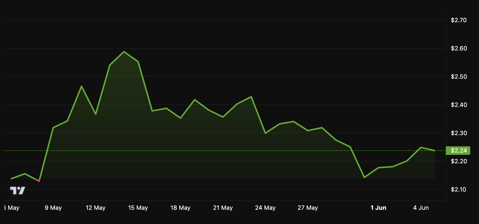 Зростаюча впевненість у схваленні ETF також позитивно вплинула на ціну. За даними BeInCrypto, між 14 травня та 31 травня альткоїн зазнав значного зниження на 23,08 %.
