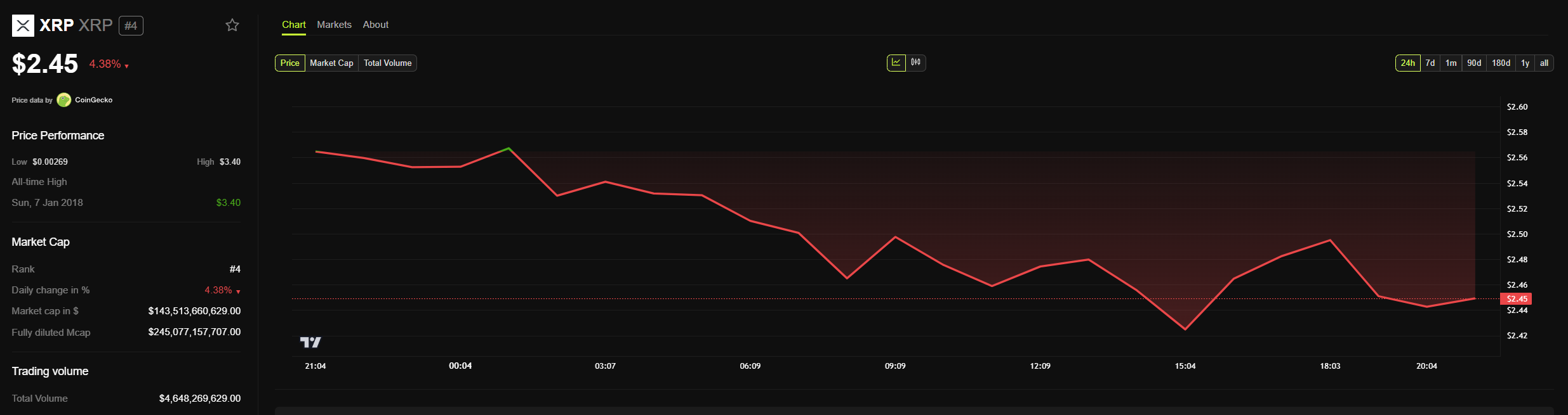 Відхилення клопотання спричинило негайну реакцію ринку: ціна альткоїна XRP знизилася невдовзі після оголошення рішення. Сьогодні XRP впав майже на 5 %, попри зростання на 15 % за останній місяць.