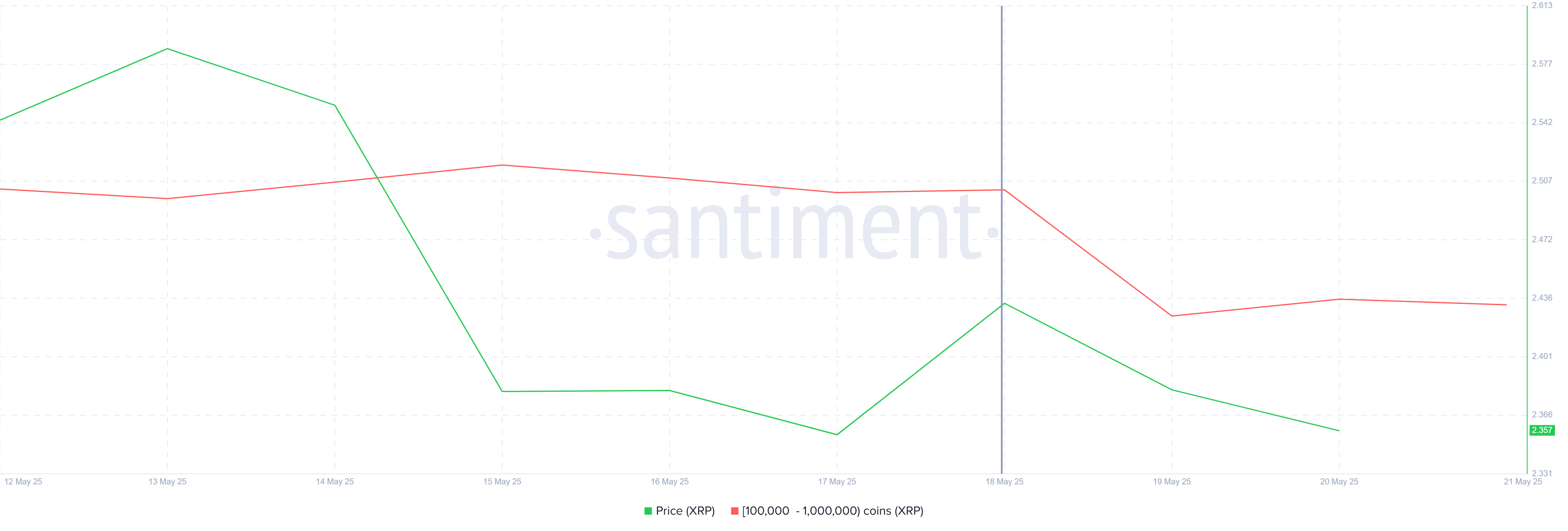 Поведінка цих китів свідчить про те, що їхня підтримка ціни є невизначеною, що ще більше ускладнює здатність XRP утримувати свої останні здобутки. Це додає до загального слабкого настрою щодо відновлення XRP.