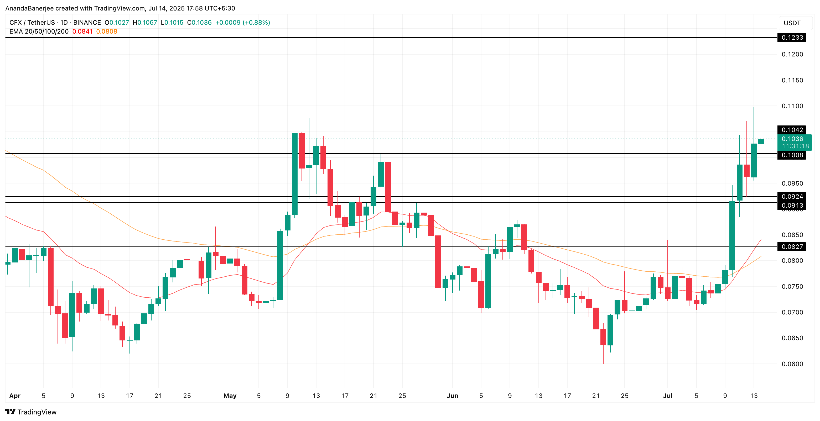 Поки CFX тримається вище 0,1008 долара і цей розрив EMA продовжує розширюватися, бики можуть залишатися в керівництві.